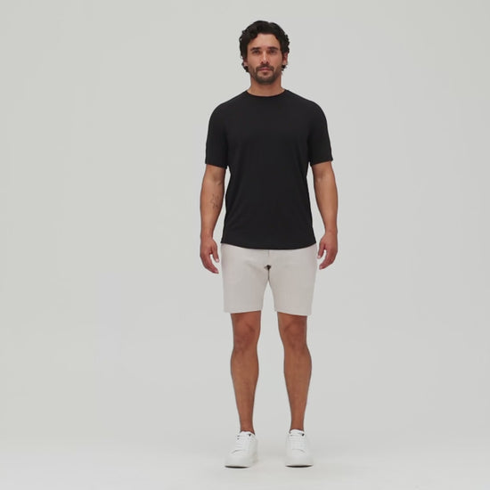 Designed for elevated everyday wear, the Short Sleeved Raglan Scallop Crew T-Shirt in Soft Techno Jersey delivers advanced performance with a refined sensibility. Engineered from Tencel fibers with added stretch, this jersey offers exceptional softness, breathability, and fluid movement. Naturally thermoregulating and hypoallergenic, the fabric absorbs significantly more moisture than cotton while resisting odor, friction, and wrinkles. Adaptable and effortlessly polished, Soft Techno Jersey is performance comfort—reimagined for modern life.