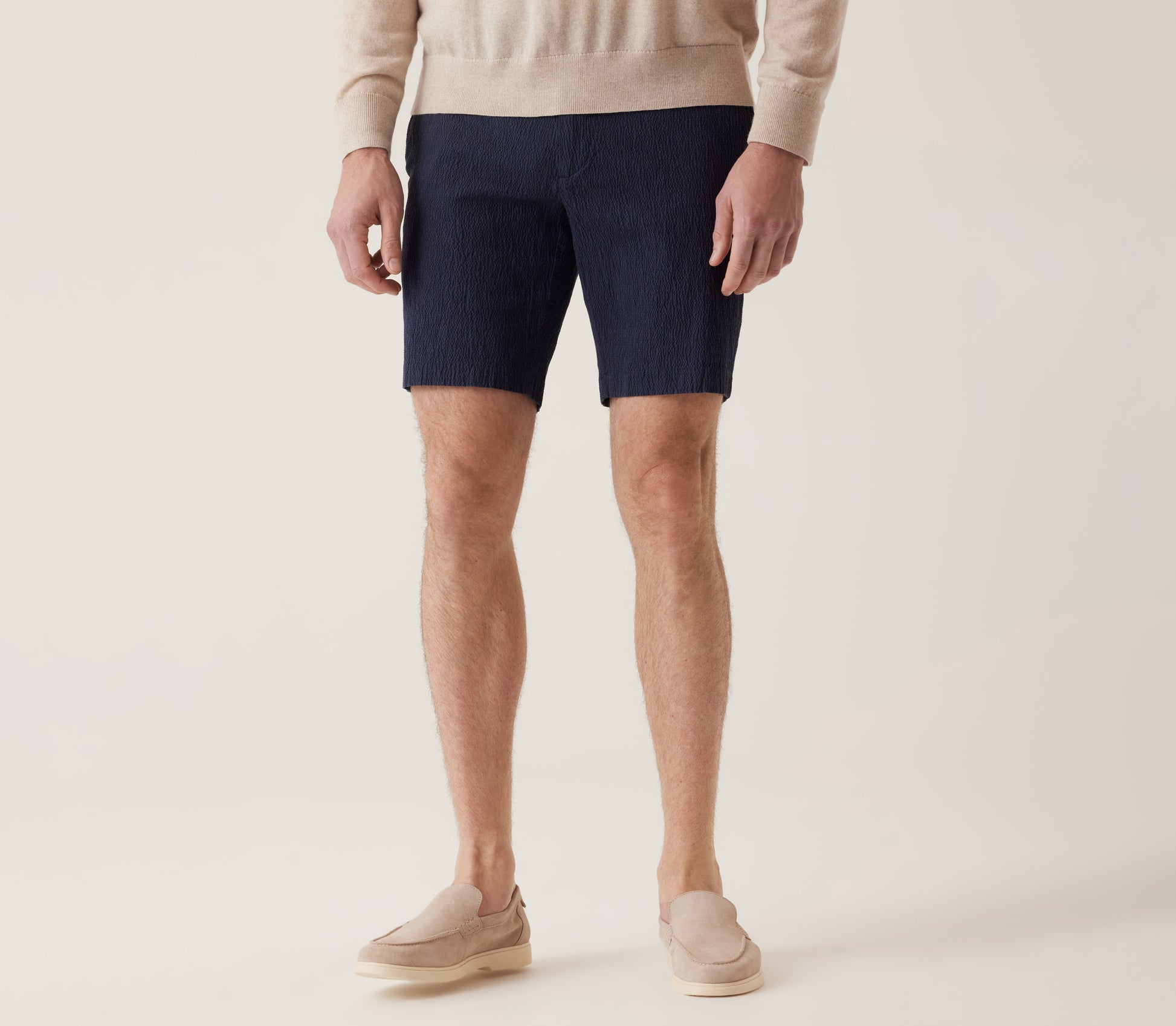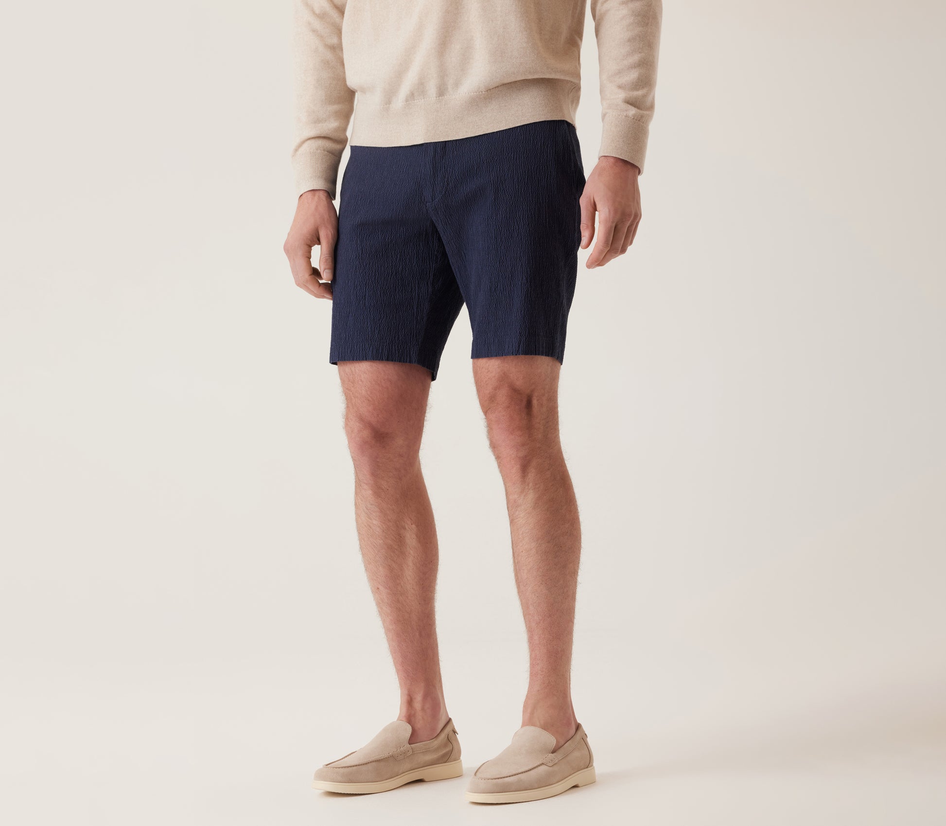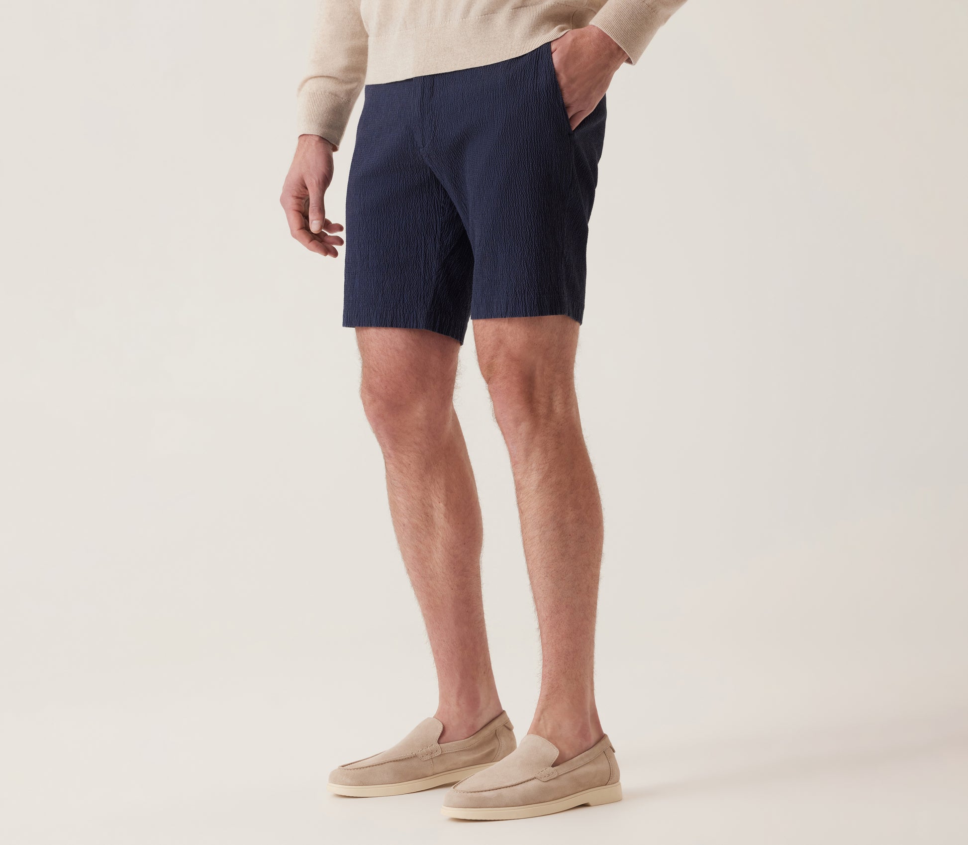 Effortlessly refined, the Oasis Bermuda in Supernatural Seersucker features a breathable, textured fabric with natural stretch. Its tailored fit and lightweight feel make it a warm-weather essential.