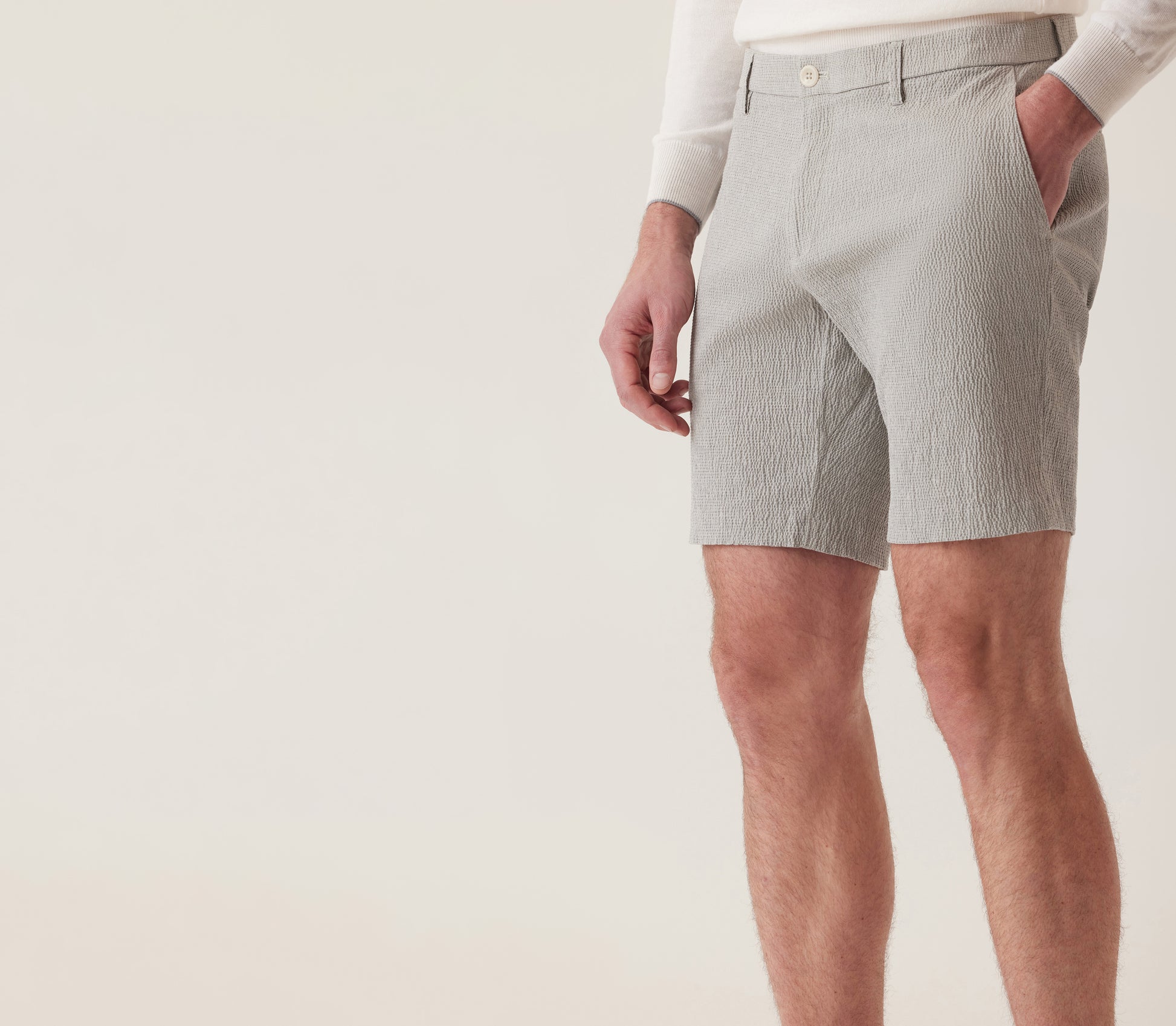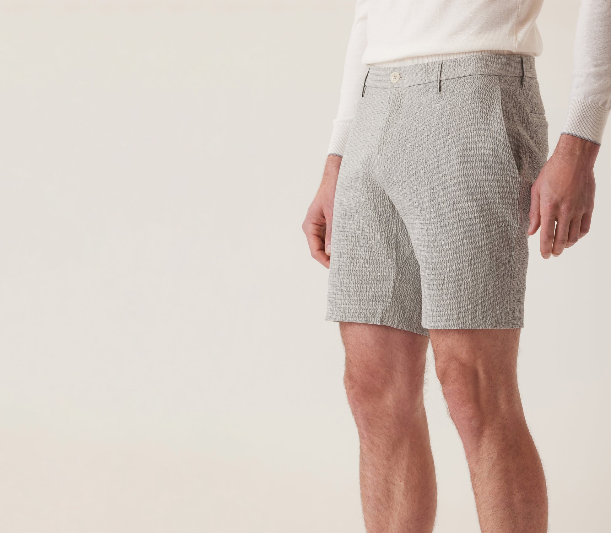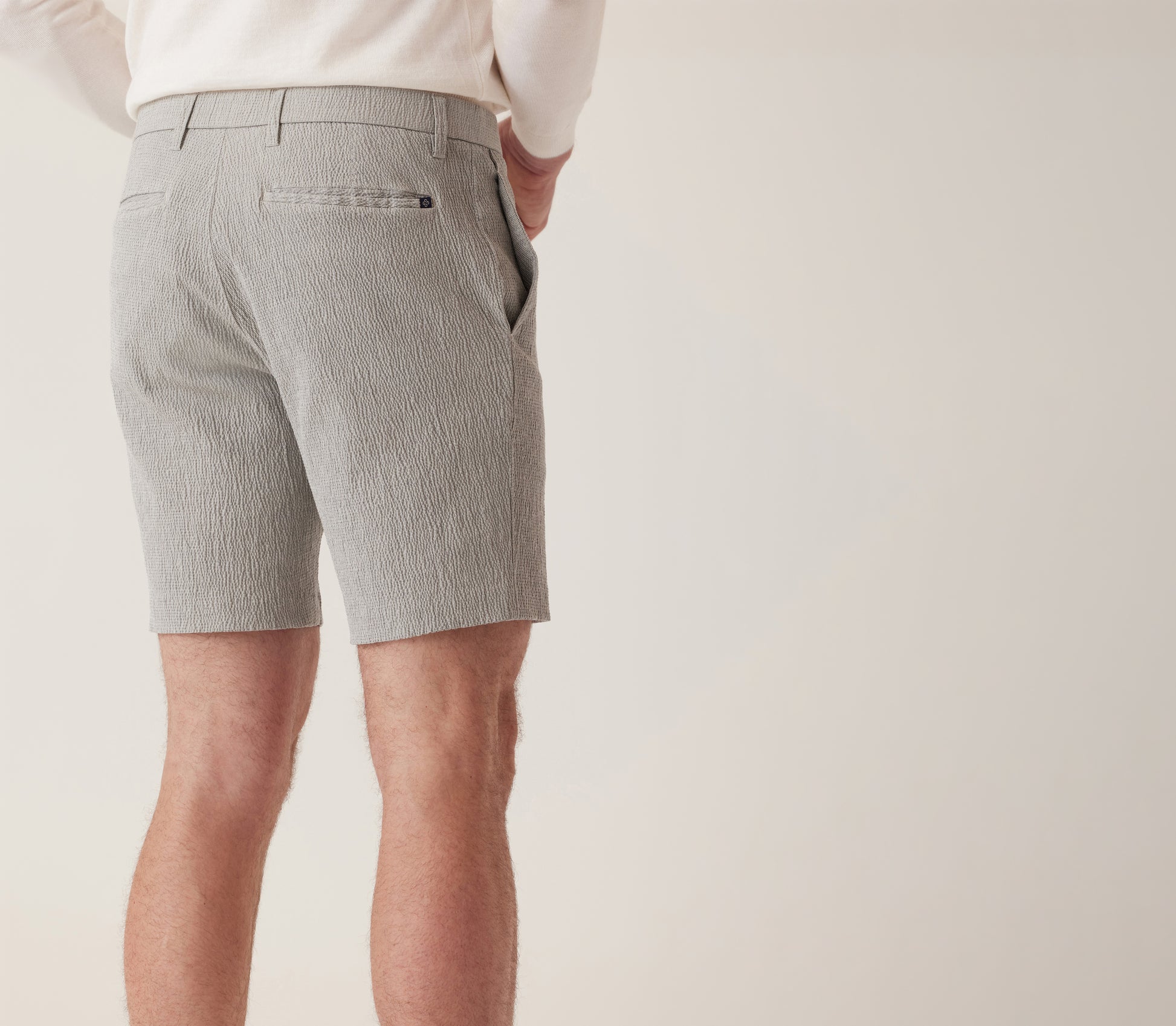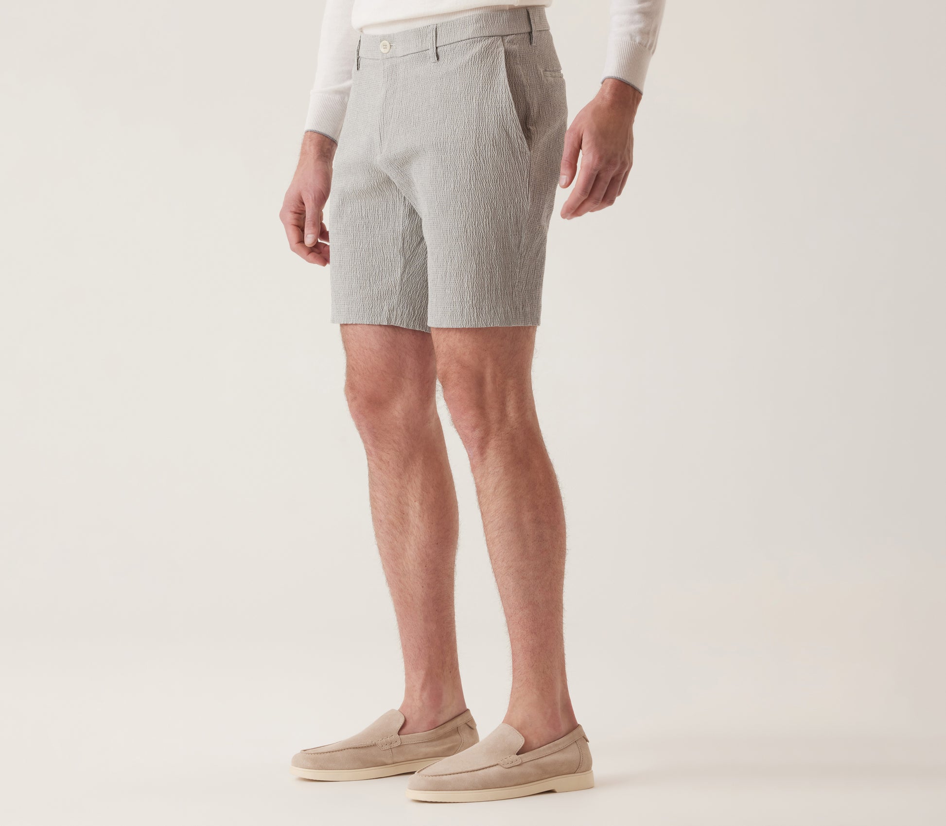 Effortlessly refined, the Oasis Bermuda in Supernatural Seersucker features a breathable, textured fabric with natural stretch. Its tailored fit and lightweight feel make it a warm-weather essential.