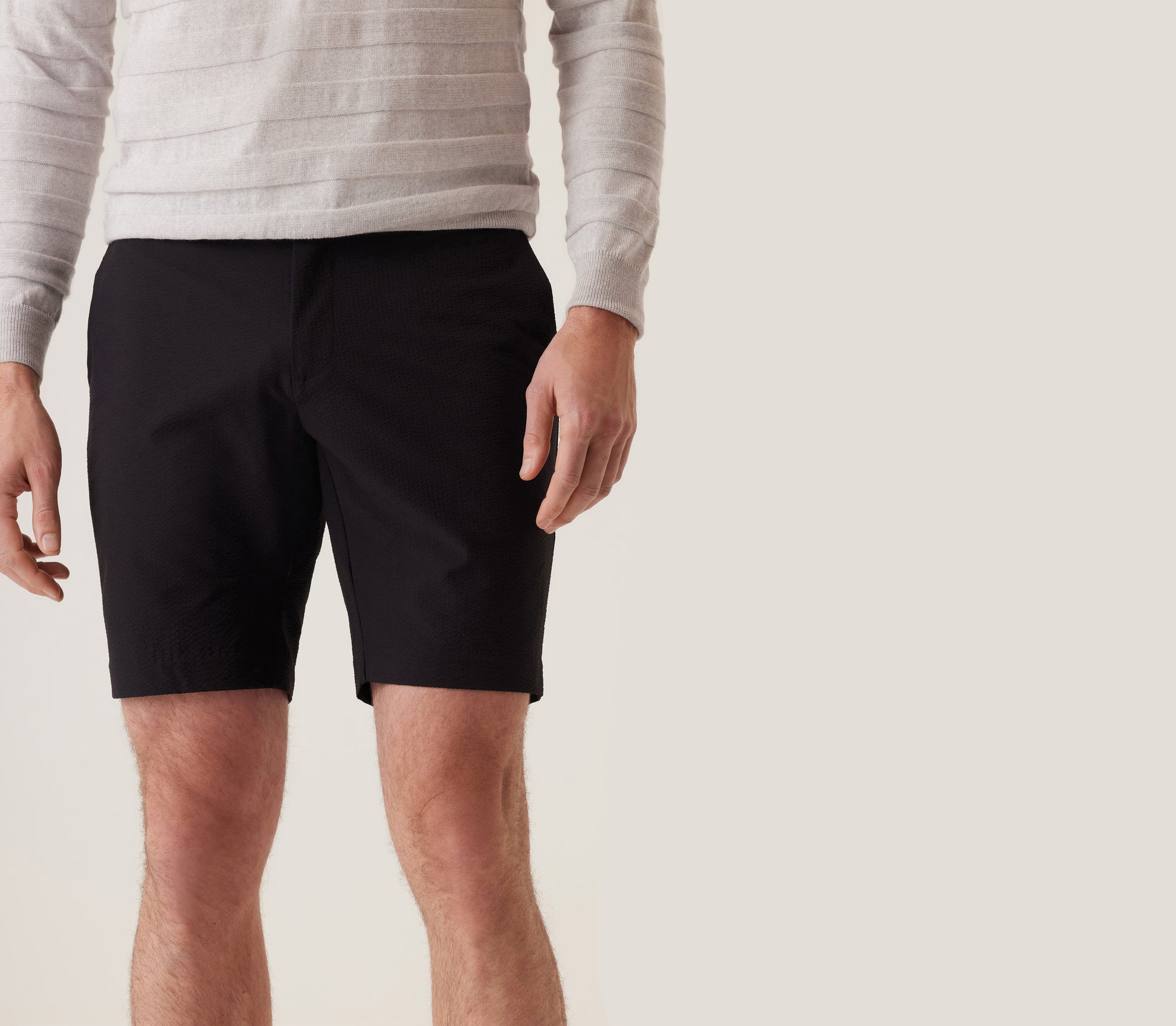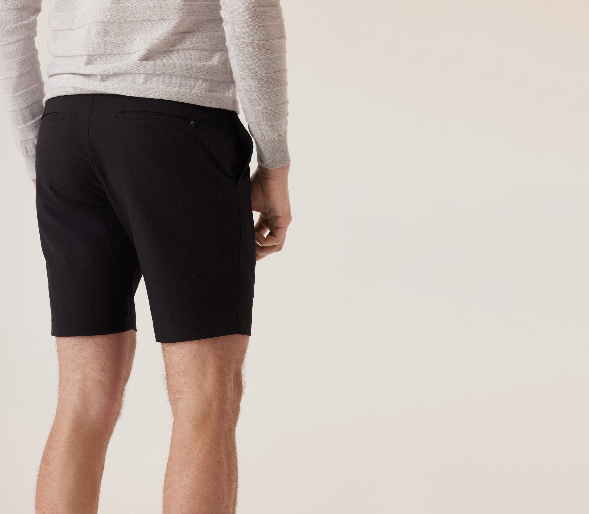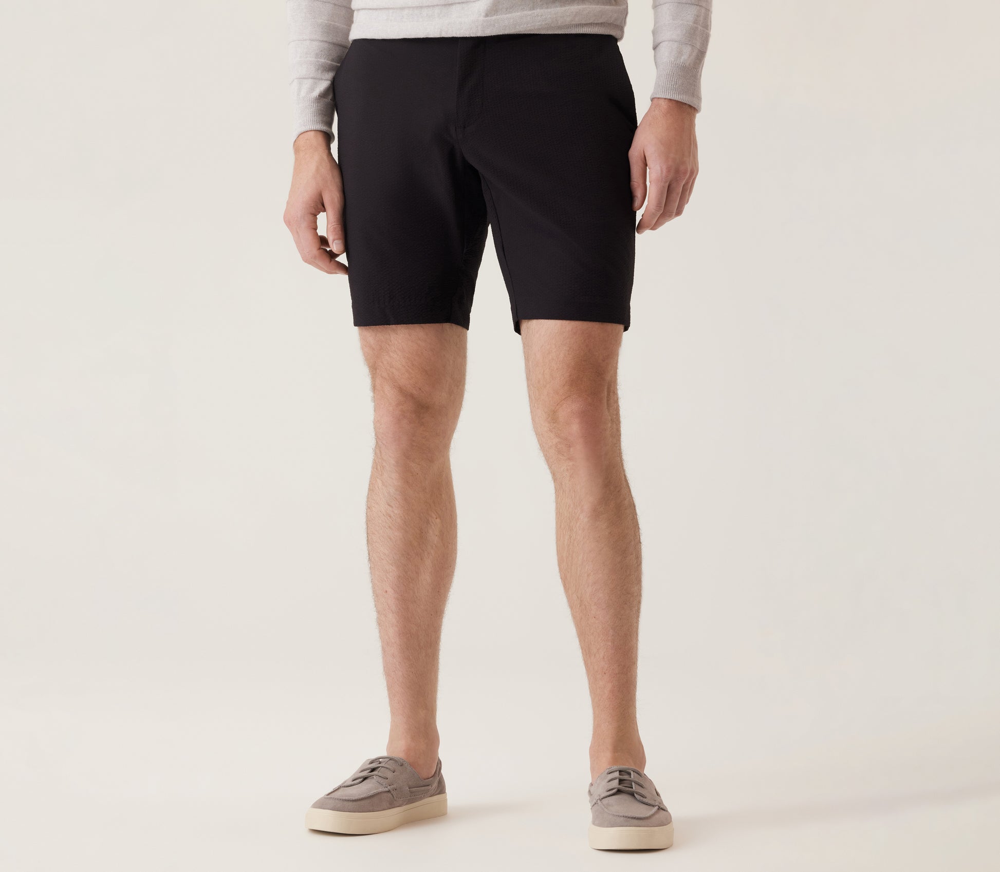 Designed for warm-weather elegance, the Oasis Bermuda in Satellite EME Seersucker combines breathability with a refined finish. Its tailored fit and lightweight feel make it a go-to for effortless sophistication.