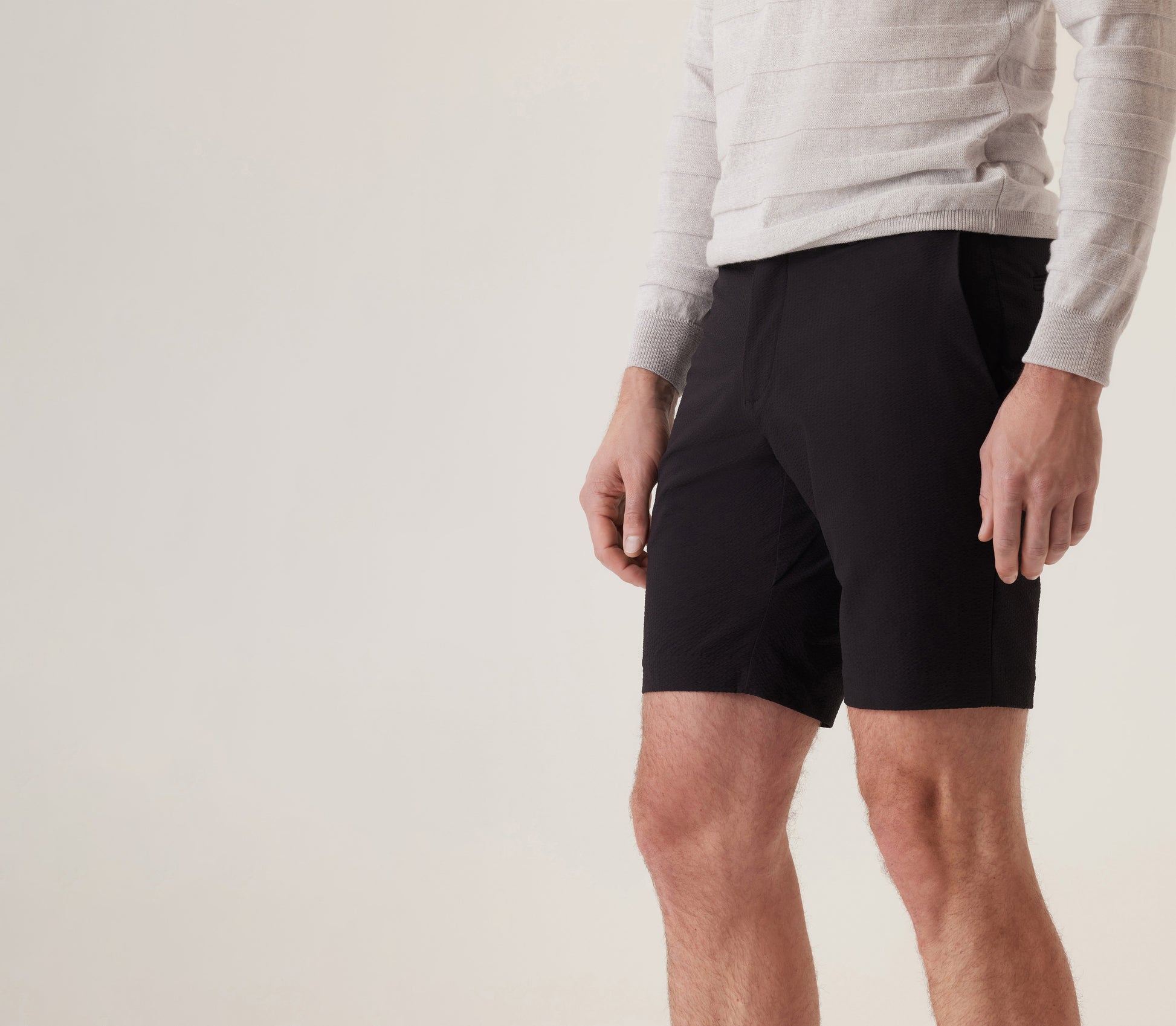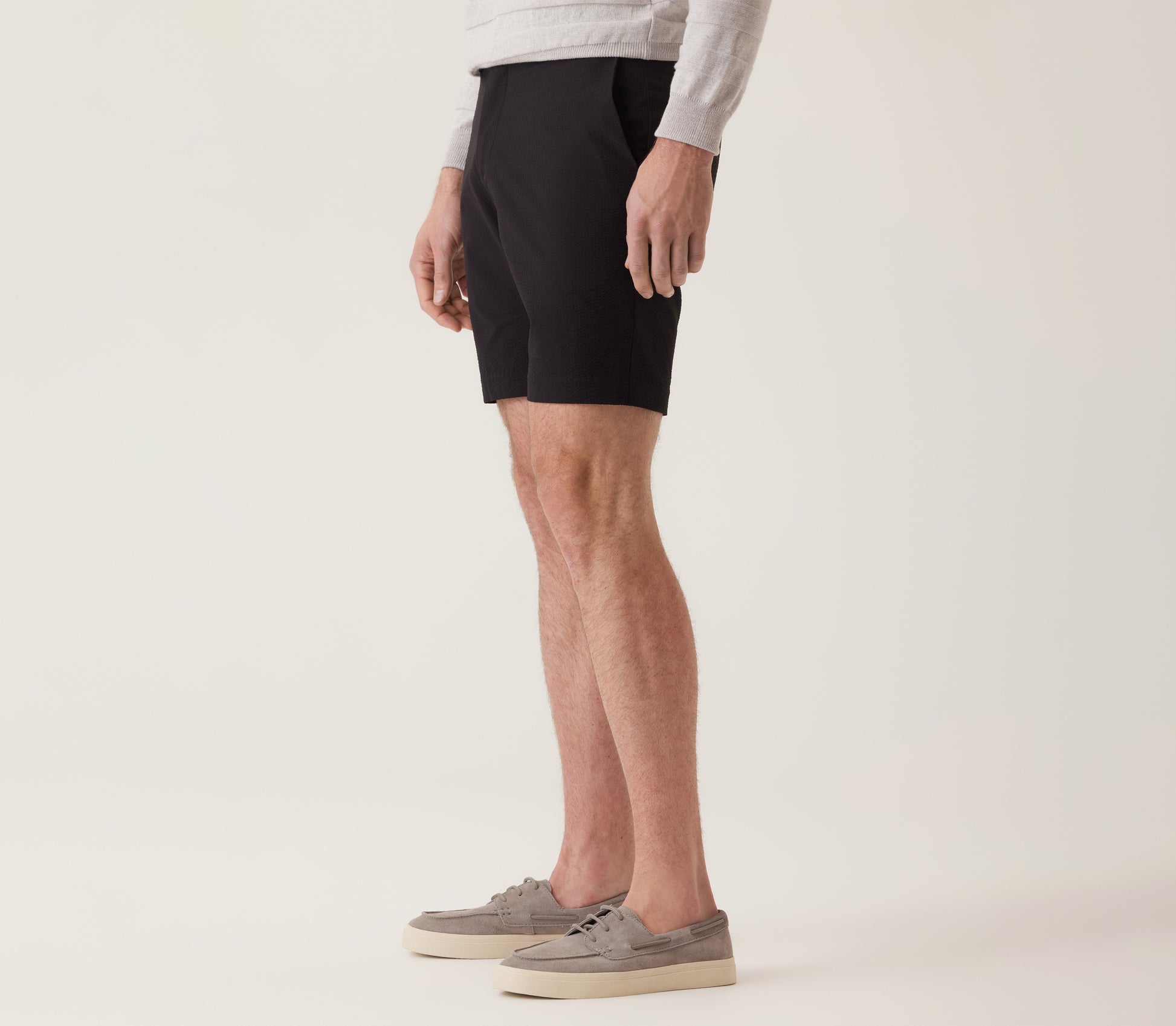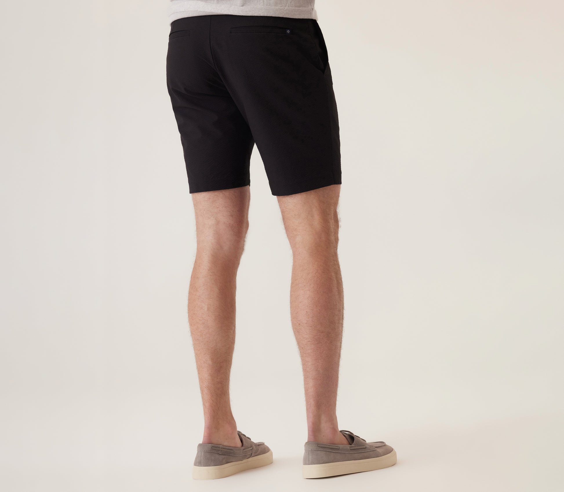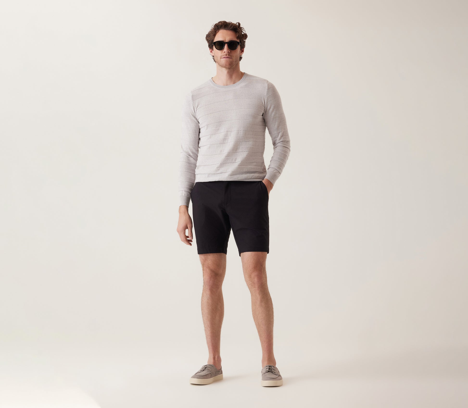 Designed for warm-weather elegance, the Oasis Bermuda in Satellite EME Seersucker combines breathability with a refined finish. Its tailored fit and lightweight feel make it a go-to for effortless sophistication.