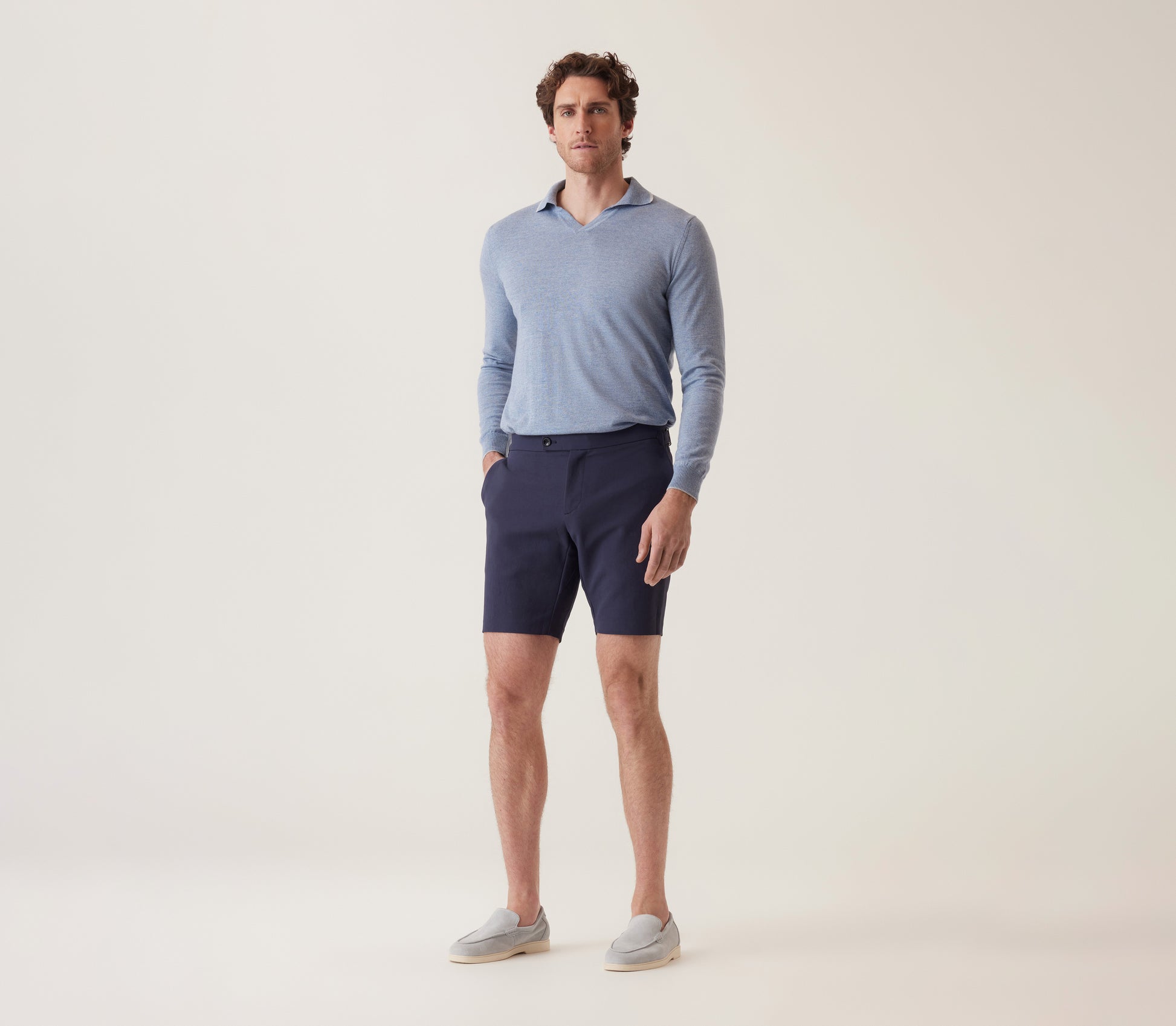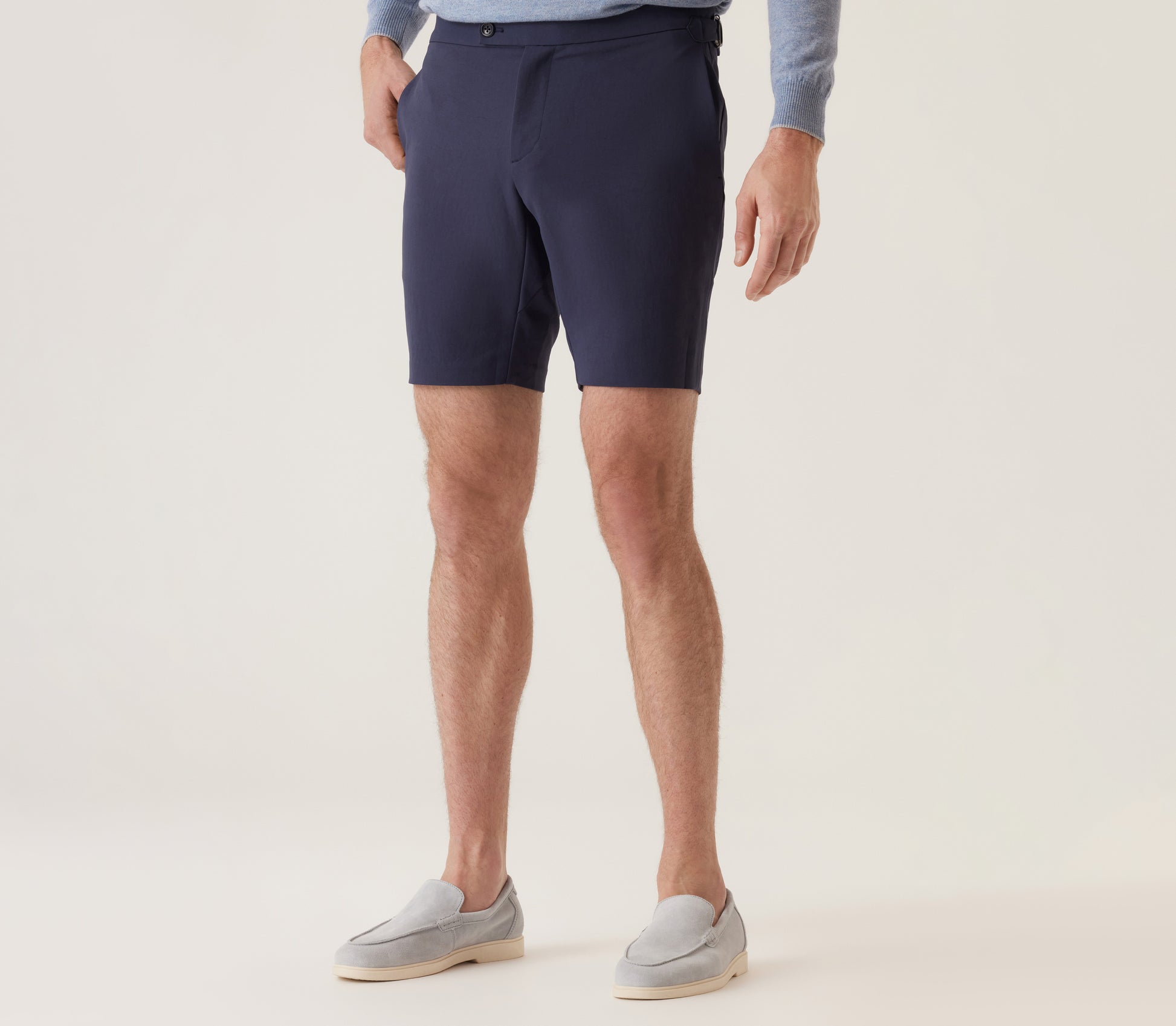 Crafted from Supernatural Sateen, the Discovery D-Ring Bermuda blends a refined sheen with lightweight breathability. Its tailored silhouette and adjustable D-ring add versatility, making it ideal for both casual and upscale settings.