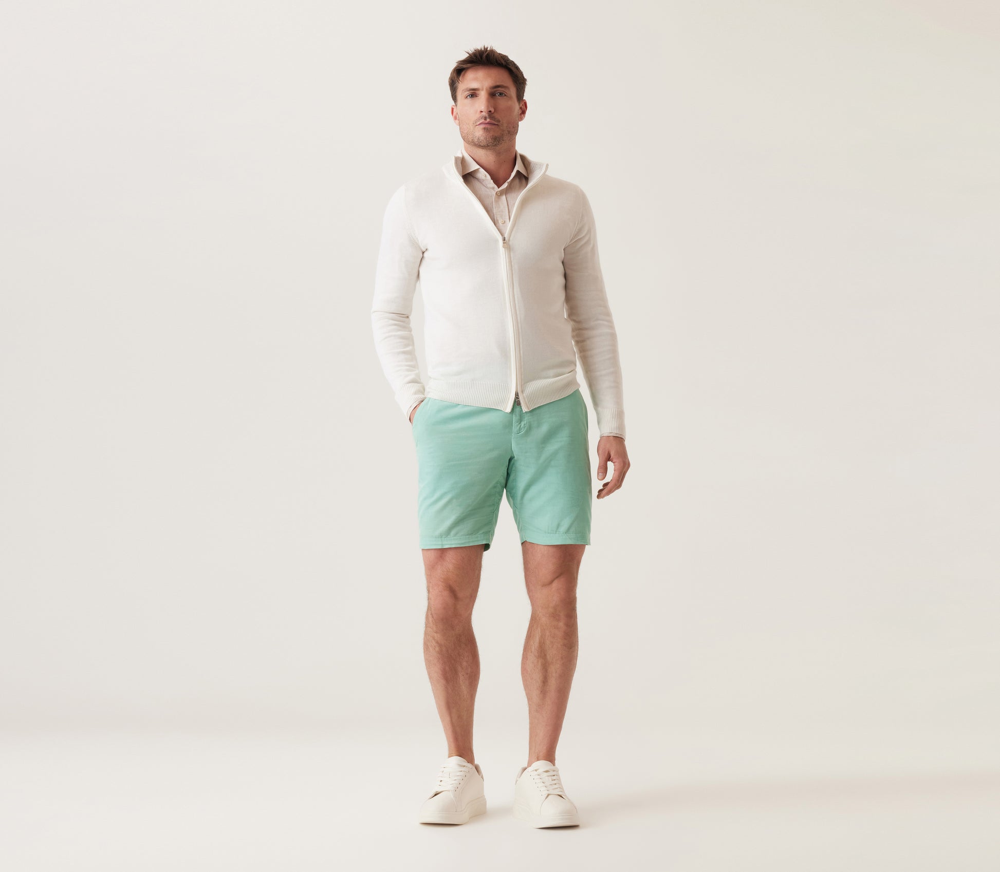 The Galaxy Bermuda in Cloud Corduroy redefines classic texture with an ultra-light, soft-touch finish. Designed for seamless transitions, its tailored fit and subtle stretch ensure all-day ease.